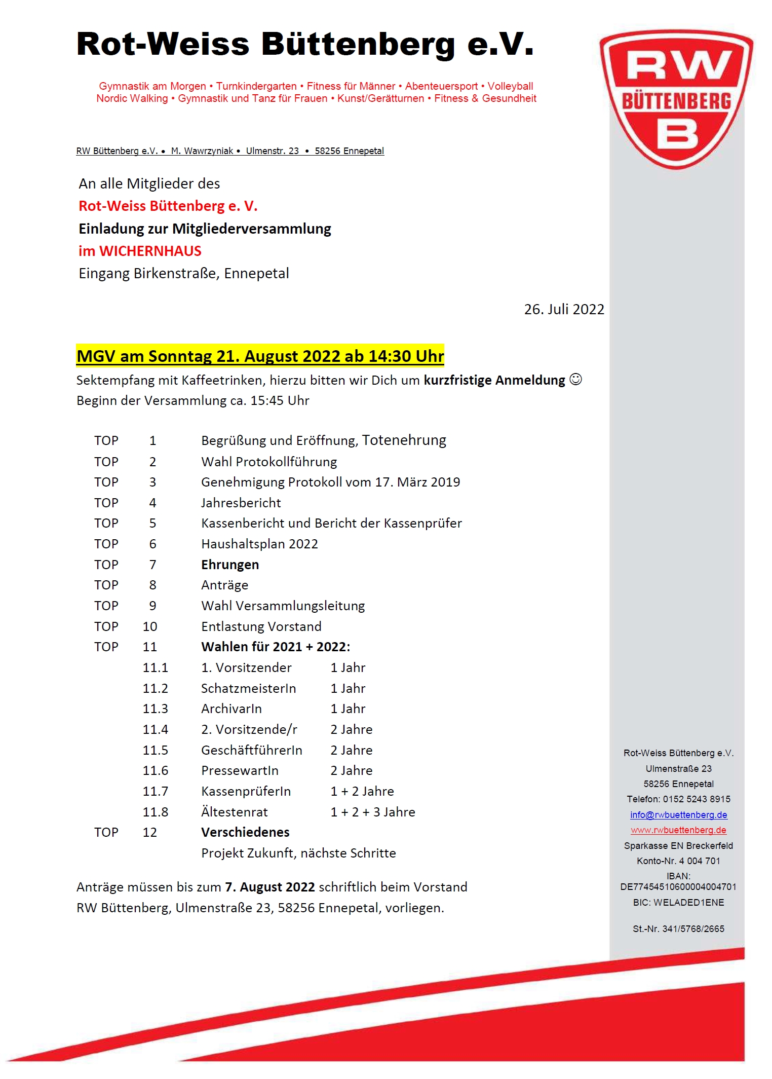 Angebot Übungsleiter |