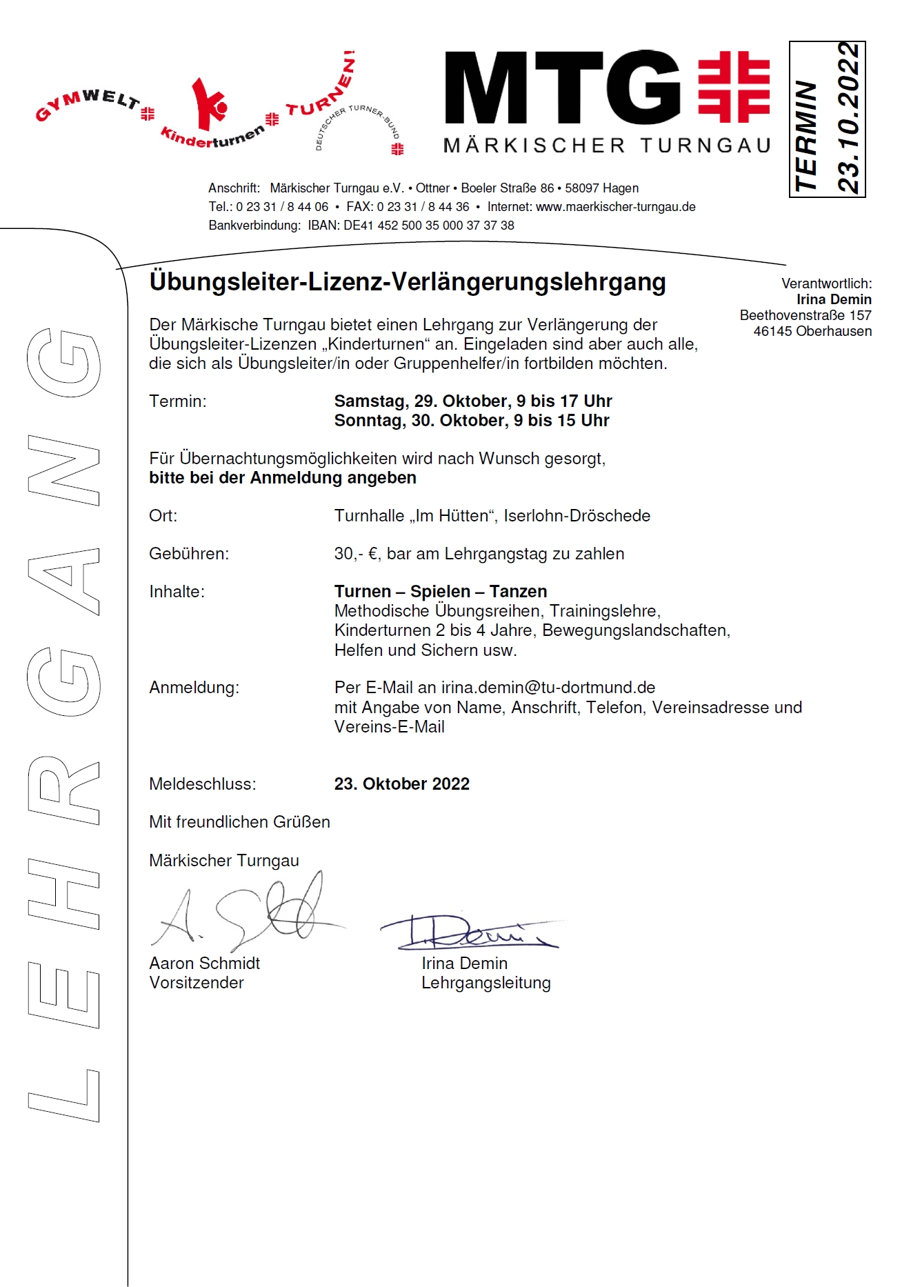 Verlängerung der ÜL-Lizenzen Kinderturnen